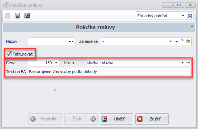 - taktiež je možné si zadať presný text na faktúre, ktorý sa bude tlačiť na dokladoch.