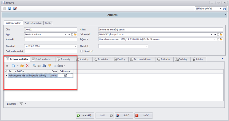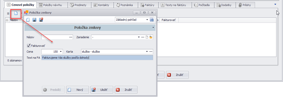 Tieto cenové položky sa zadávajú cez nový záznam,