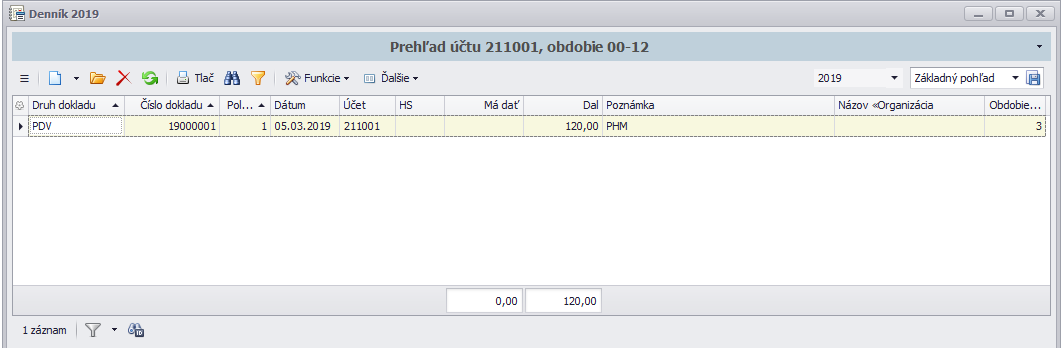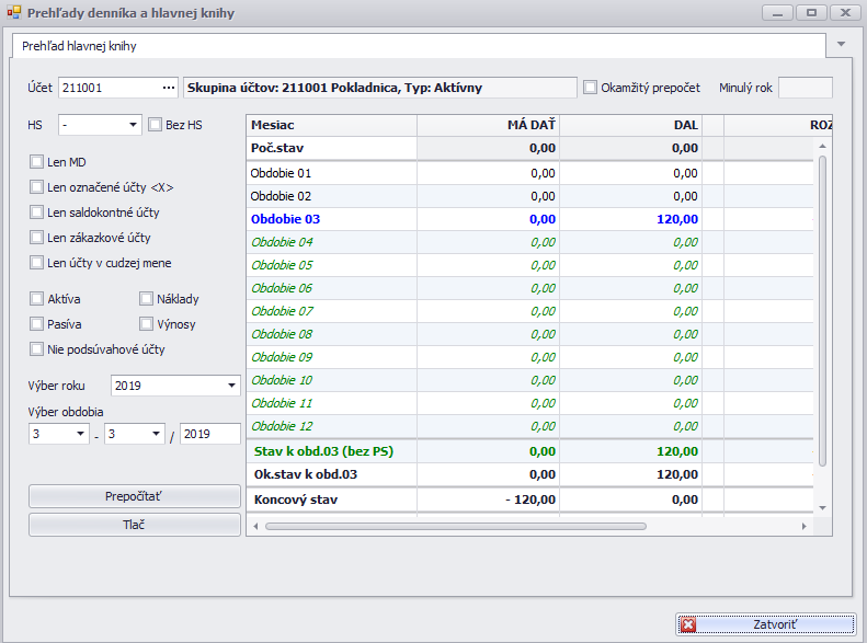 Výber obdobia - výber obdobia na zobrazenie v hlavnej knihe.