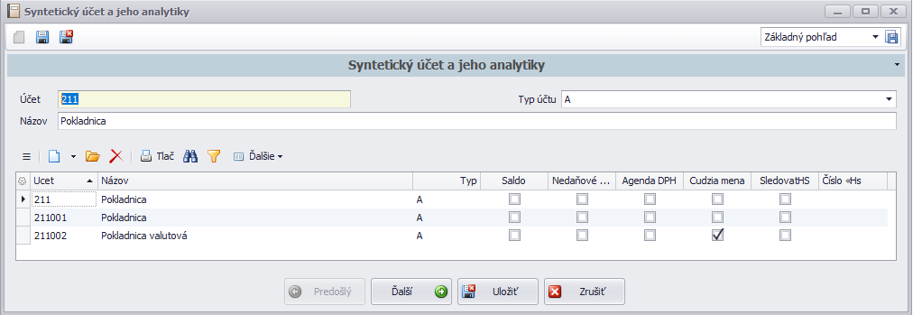 Hlavná kniha zahŕňa syntetické účty a analytické účty podľa účtového rozvrhu.
