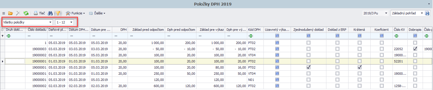 - všetky položky DPH za vybrané obdobie