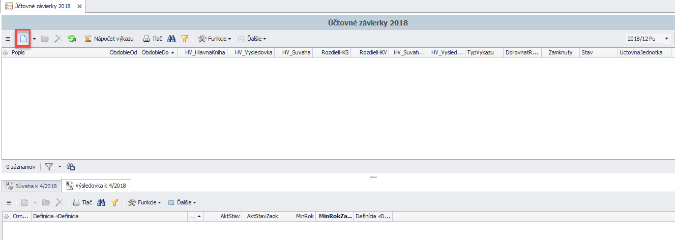 Vytvoriť účtovnú závierku je možné voľbou nový záznam, po ktorom sa zobrazí tabuľka, ktorú je potrebné vypísať.